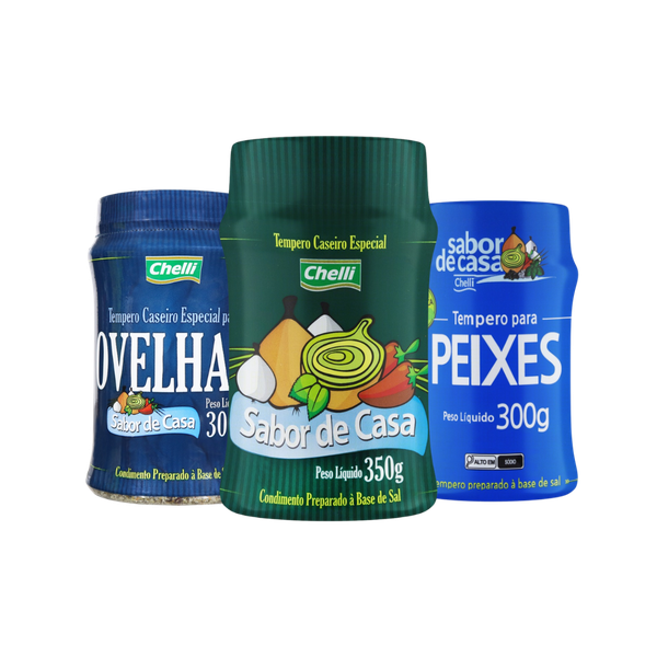 Leve praticidade e sabor para sua cozinha com o Combo Sabor de Casa Chelli. São 3 temperos prontos — Tradicional, Ovelha & Caça e Peixes — que substituem o sal e realçam qualquer receita. Um kit completo para quem busca rapidez, versatilidade e aquele gostinho de comida caseira no dia a dia.